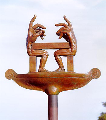 Der Künstler Michael Schwarze vertritt einen eigene Kunstrichtung, die es allgemein dem Betrachter nicht leicht macht, Zugang zu seiner Figurenwelt zu finden. Es ist jedoch auch für den ungeübten Betrachter eine Familienzusammengehörigkeit zu erkennen. Es ist eine immer wiederkehrende Leitfigur, man könnte auch sagen ein Stammvater, der sich hier fortzeugt kein idealer Vater, sondern von Anfang an behaftet mit dem Kainsmal durch die sinnbildhafte Reduktion der menschlichen Gestalt auf jene Gliedmaßen, die Handeln und Bewegung zum Ausdruck bringen. Fast immer tritt bei Michael Schwarze anstelle des Kopfes die rechte Hand. Bei den Frauengestalten allerdings fehlt diese Hand oder ist durch eine Schwinge ersetzt. Nur bei jenen Gestalten, die dem Tode ins Auge schauen wie der stürzende Ikarus oder bei dem toten Ekudu der Beweinung ist der Kopf vorhanden.